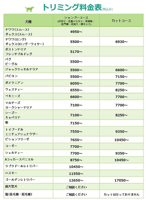 *サイズ・体重などによりお値段が変わる可能性があります(+500円~)